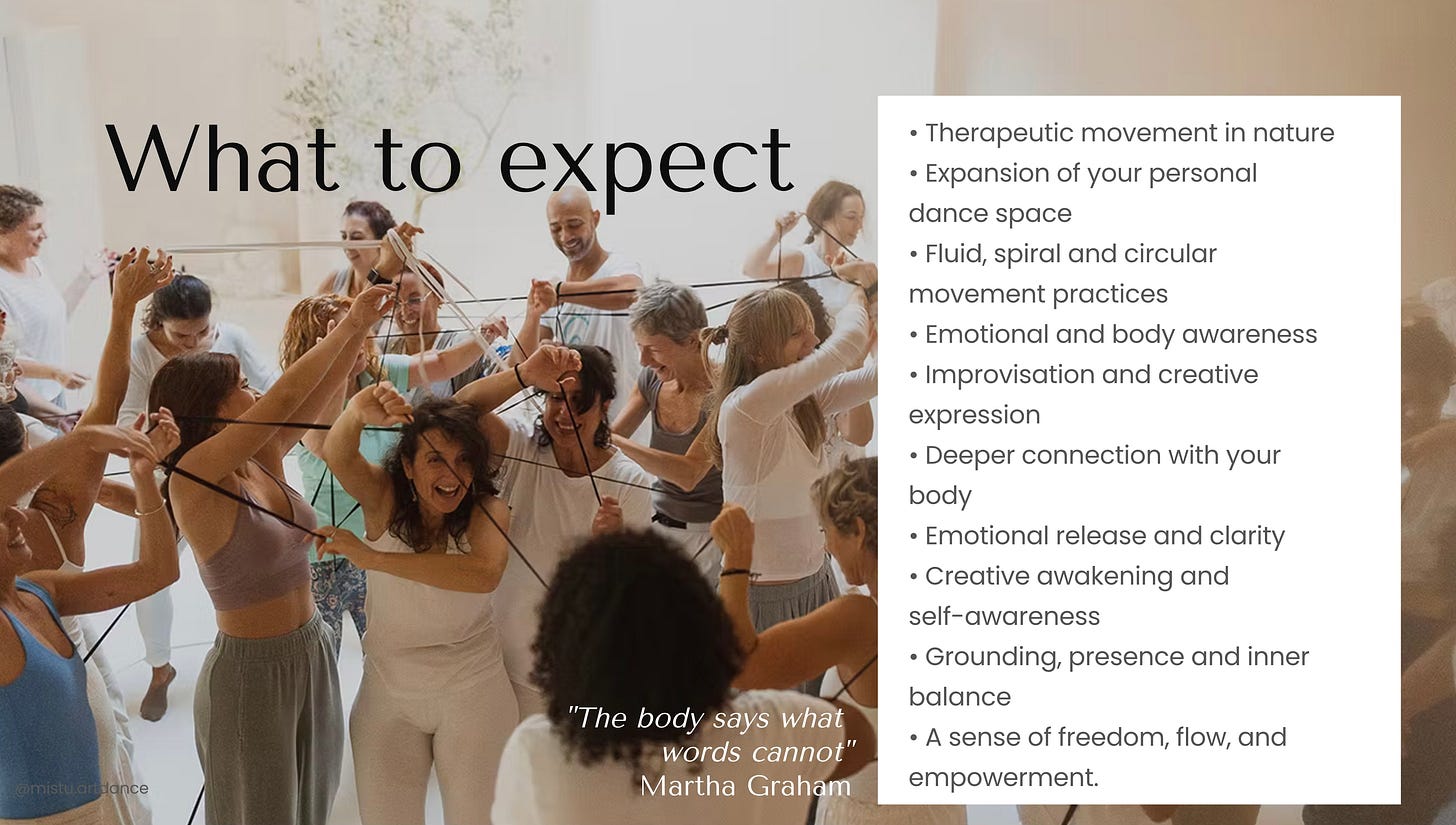 To join this experience, you can check out her work on instagram: mistu_artdance, or contact us for the full details.